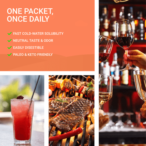 Tip the contents of one packet into the shaker, add water, juice or your favorite beverage, then shake vigorously and drink immediately while the ingredients are in suspension.